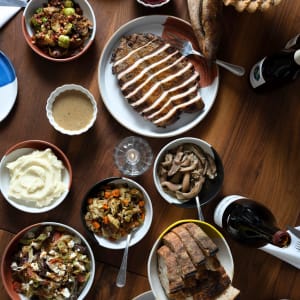 Turkey leg, slow cooked in duck fat. Choose either a whole leg on the bone (drumstick and thigh), or a pint of pulled turkey meat in turkey jus (below). Does not include gravy.